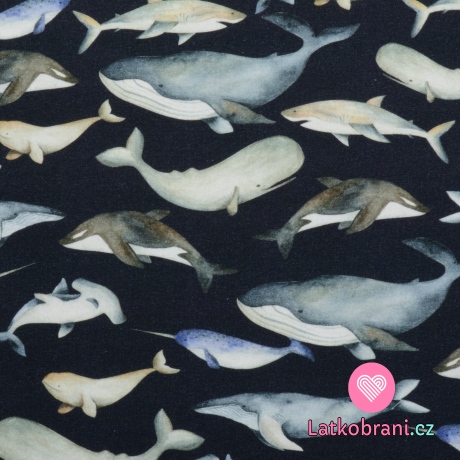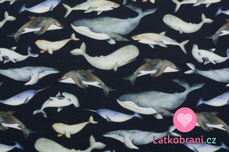 Úplet potlač morské živočíchy na tmavo modré, BIO