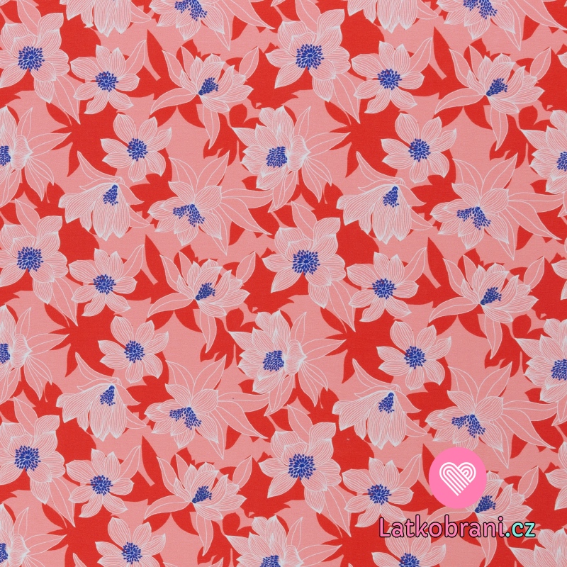 Úplet potlač tropické biele kvety na červené