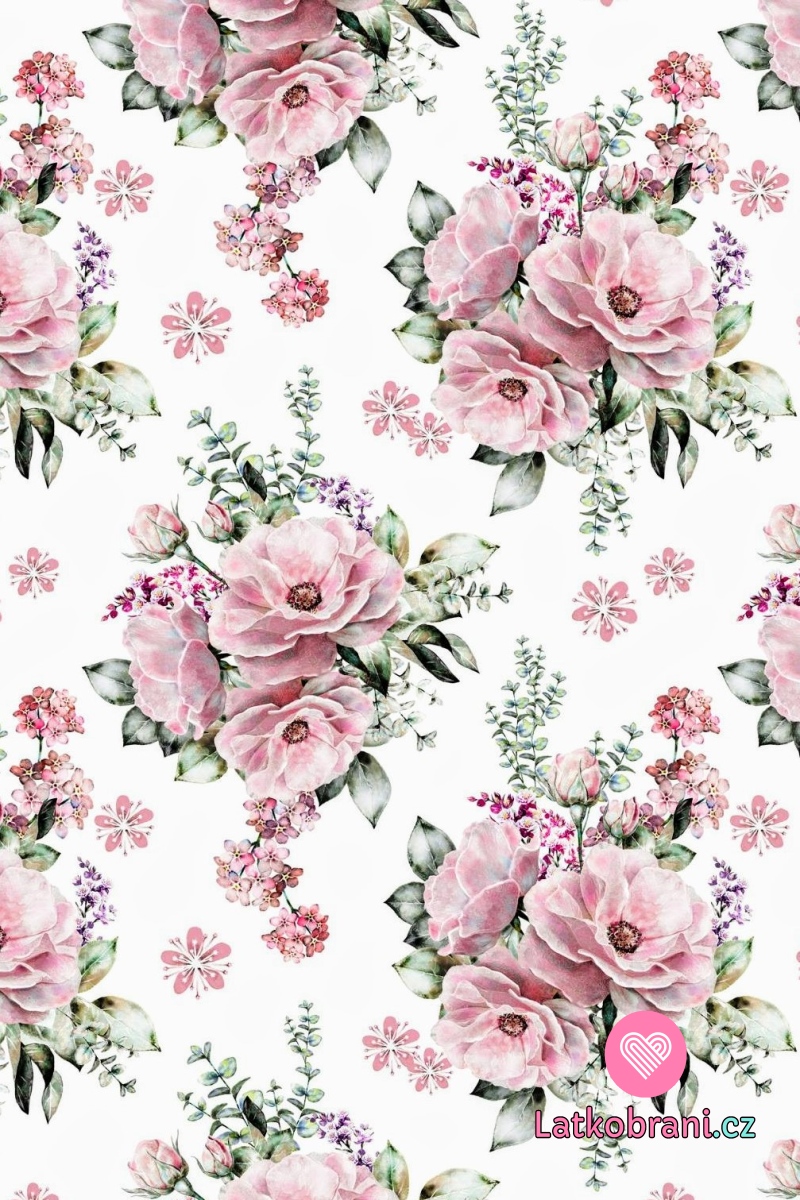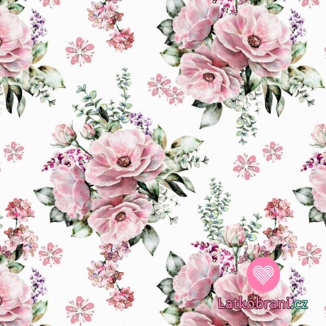 Teplákovina potlač pastelové kvety na biele