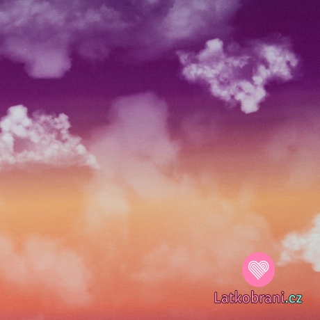 Teplákovina s prímesou modalu potlač mraky na fialovo - oranžové