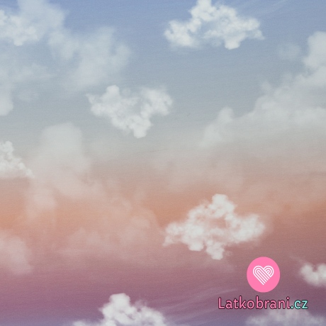 Teplákovina s prímesou modalu potlač mraky na ružovo - modrej