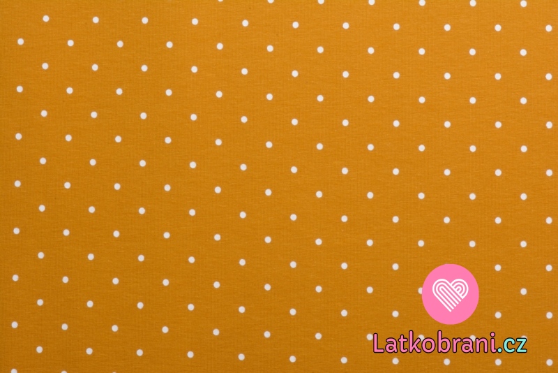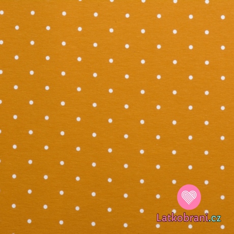 Teplákovina potlač biely puntíček na horčicovej