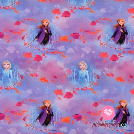 Úplet potlač Ľadové kráľovstvo - Elsa a Anna medzi lístky na modro-fialové