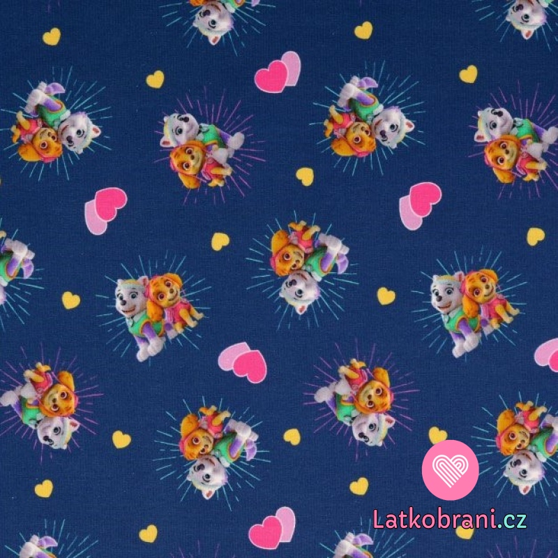 Úplet potlač priatelia z Tlapkové patroly medzi srdiečkami na tmavo modré