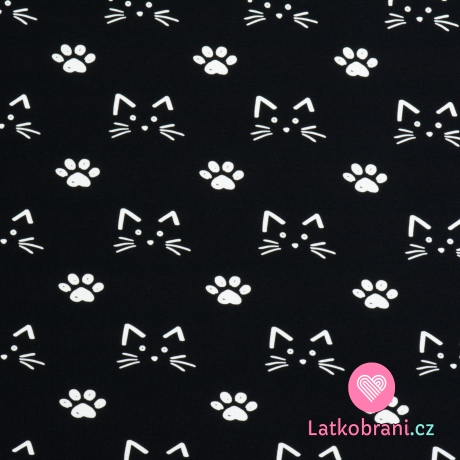 Teplákovina potlač kreslené mačičky medzi labkami na čierne