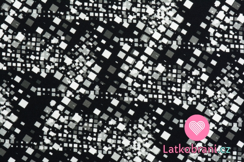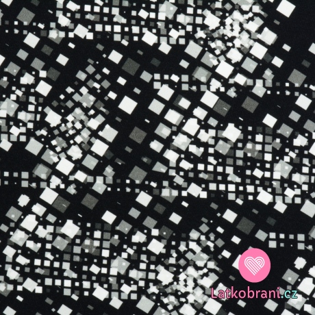 Teplákovina potlač bielej a šedej kocky na čiernej