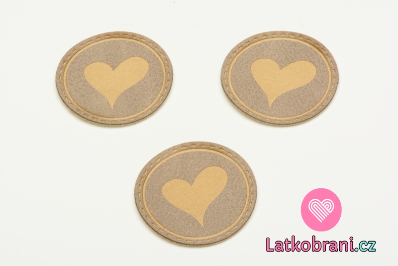 Štítok na oblečenie guľatý "srdiečko", koženkový, kožená patina