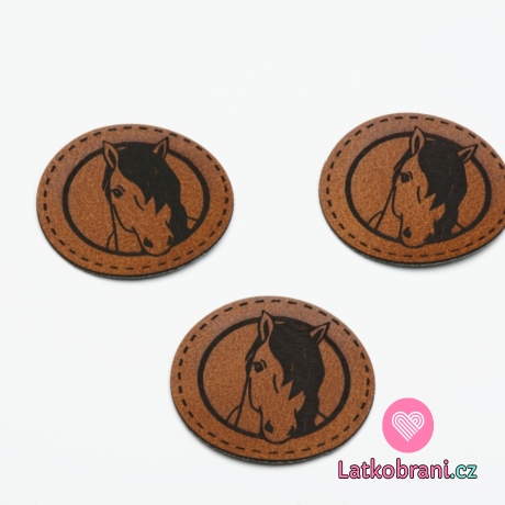 Štítok na oblečenie guľatý "kôň", koženkový, hladký povrch