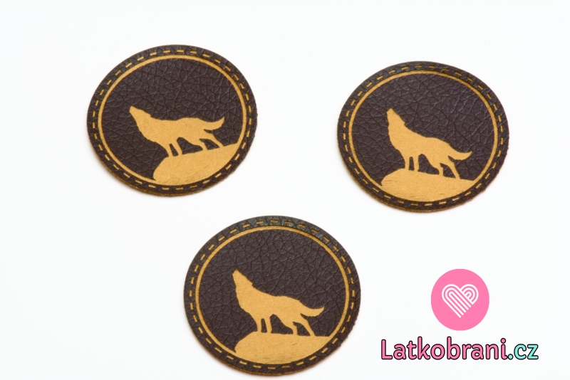 Štítok na oblečenie guľatý "vlk", koženkový, imitácia tmavej kože