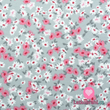 Bavlnený obojlícnej úplet kvietky na šedej
