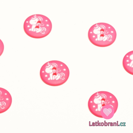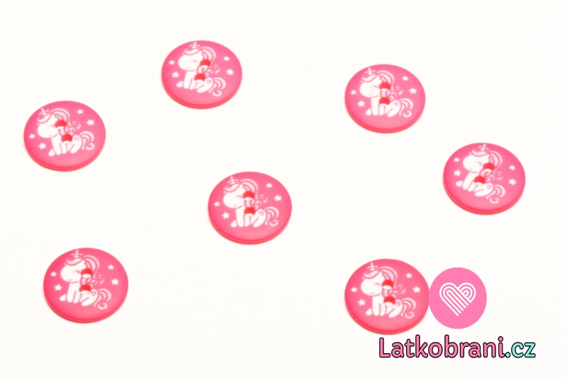 Gombík guľatý, detský s bielym jednorožcom na ružové