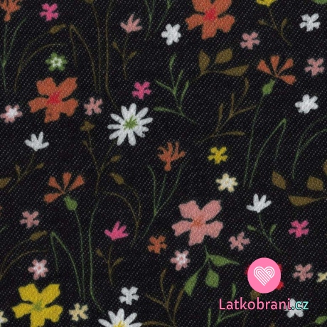 Warmkeeper potlač džínsový efekt s kvietkami na čierne