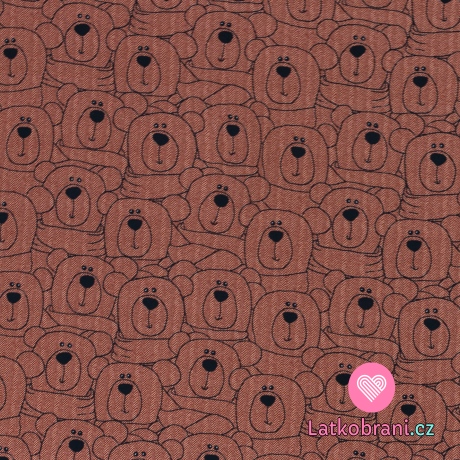 Teplákovina potlač medvedík Méďa na vínovom podkladu sa vzorom rybej kosti