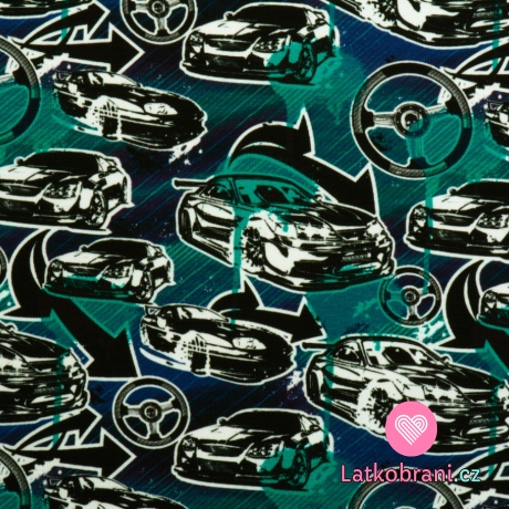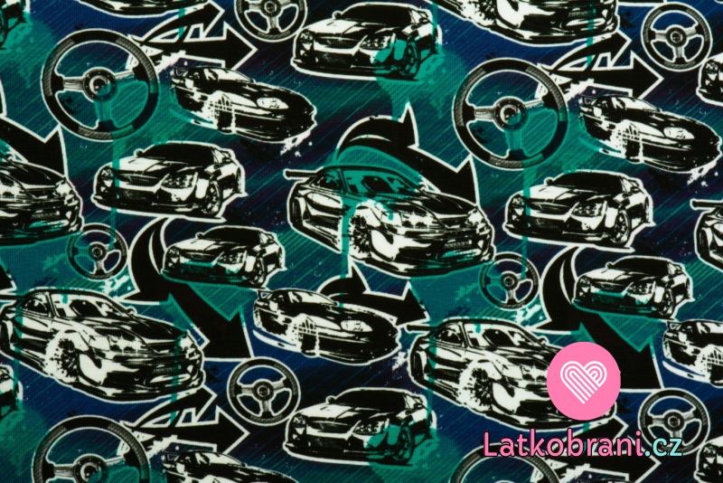 Úplet potlač pretekárske autá "Rýchlo a zbesilo" na modrej