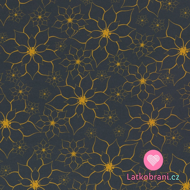 Teplákovina s prímesou modalu potlač žlté obrysy kvetov na modro-šedé