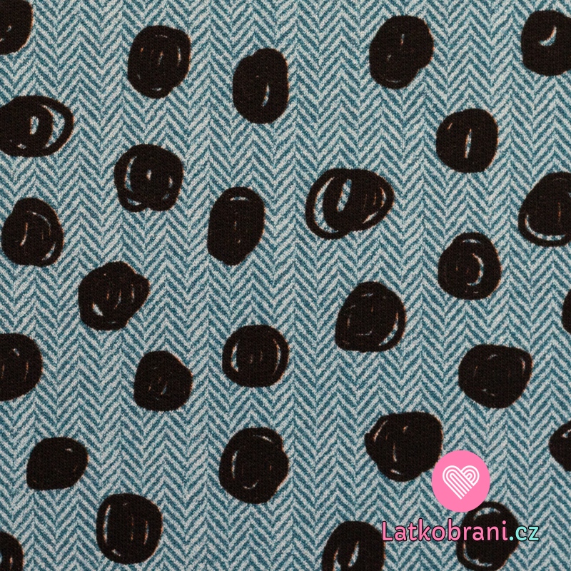 Teplákovina potlač klbka na modrej so vzorom rybej kosti