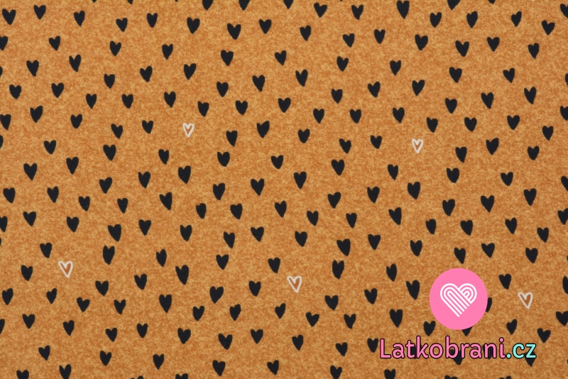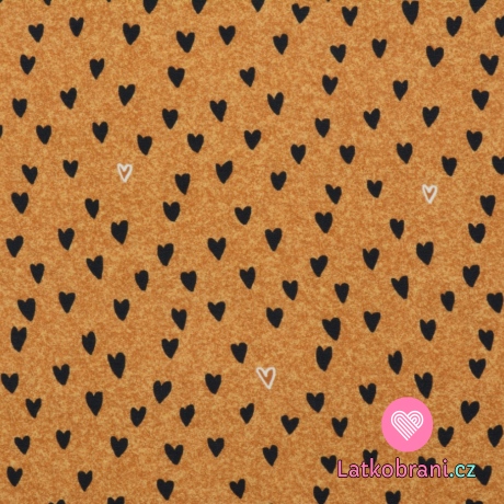 Teplákovina potlač srdiečka na tehlovom podklade jeans efekt