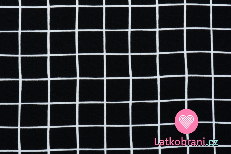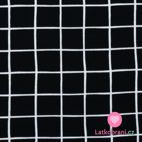 Teplákovina počesaná potlač čiernobiela mriežka, BIO