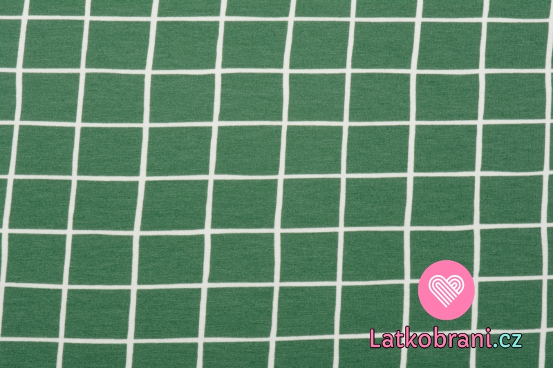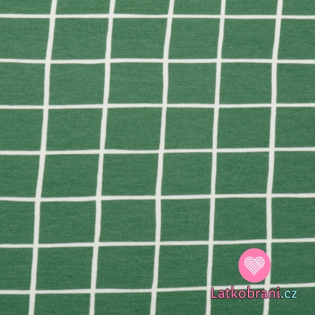 Teplákovina počesaná potlač zelená mriežka, BIO