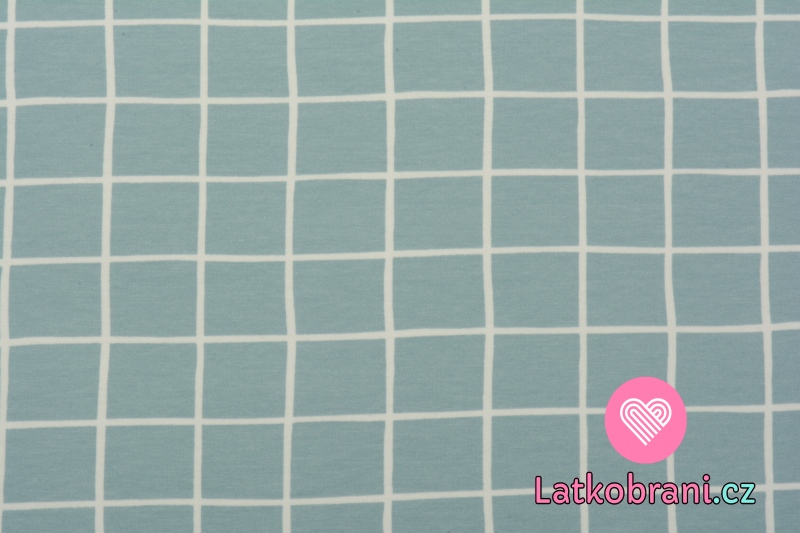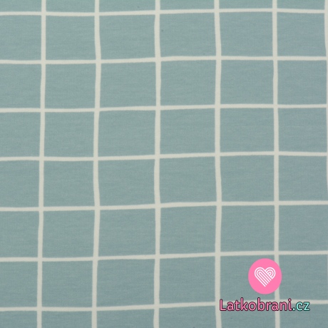 Teplákovina počesaná potlač svetlo modrá mriežka, BIO