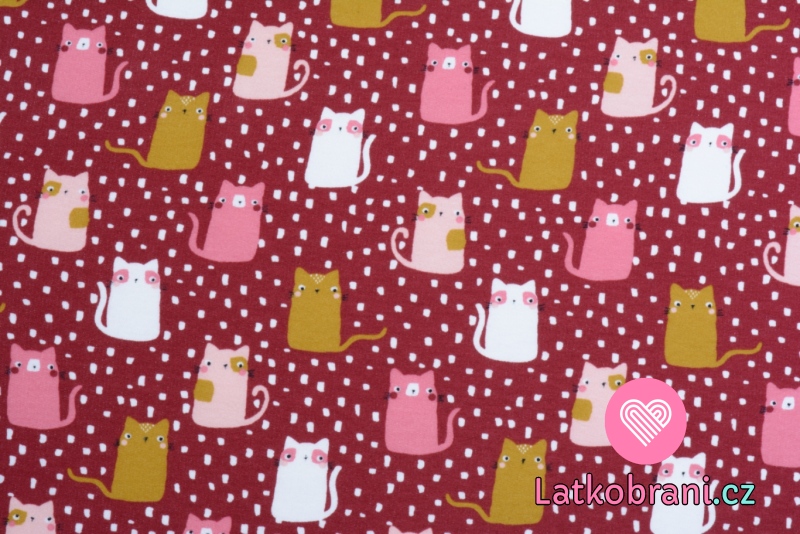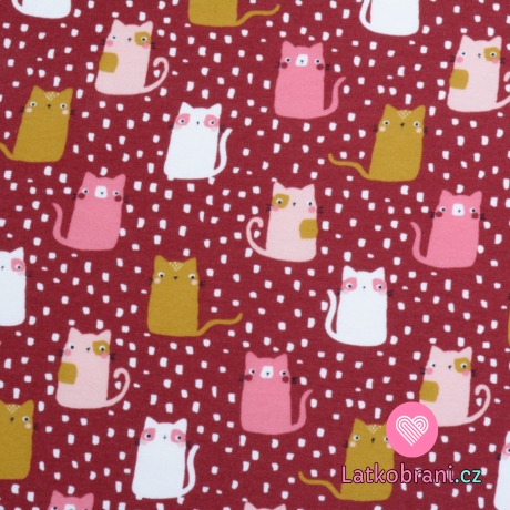 Teplákovina počesaná potlač mačičky na vínovej, BIO
