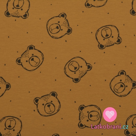 Teplákovina počesaná potlač medvedíky na horčicovej, BIO