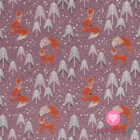 Warmkeeper potlač líštička v zasneženom lese na ružovo-fialové melange
