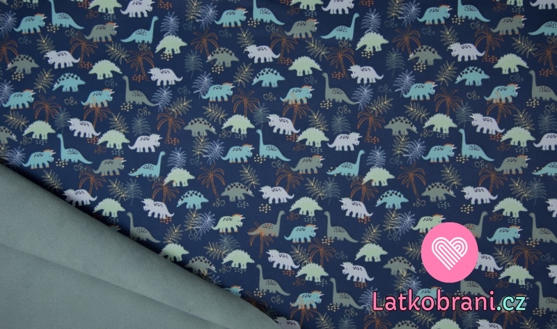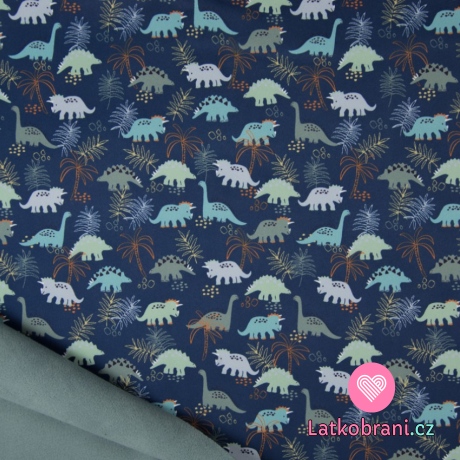 Softshell potlač dinosaury medzi pravekými rastlinami na modrej navy