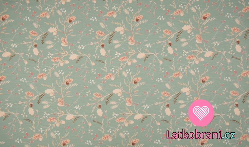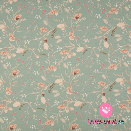 Úplet potlač vetvičky a lístky na zaprášené zelenej