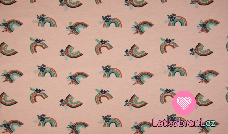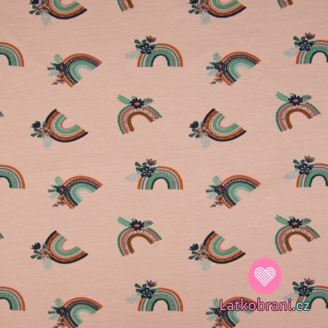 Úplet potlač rozkvitnutá dúha na zaprášené ružové