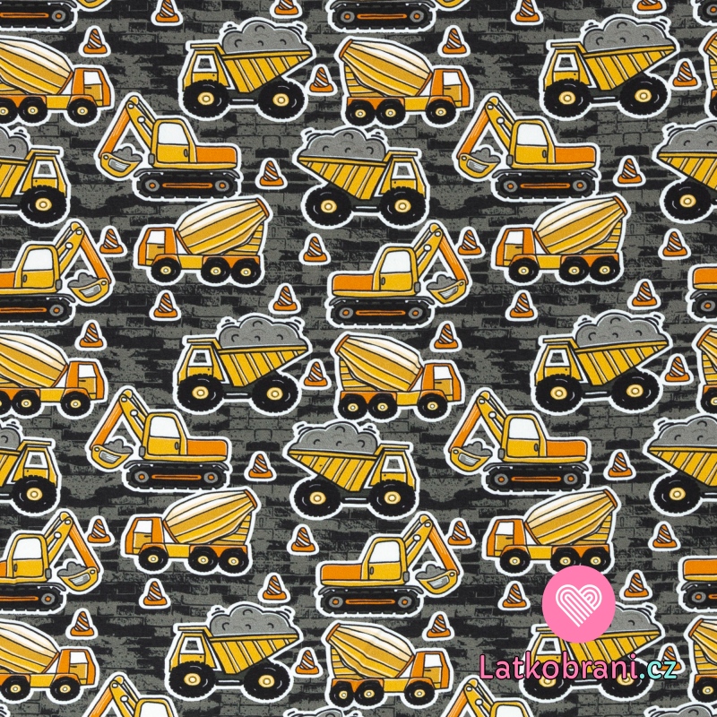 Teplákovina potlač žlté stavebné stroje na šedej, ľahko počesaná