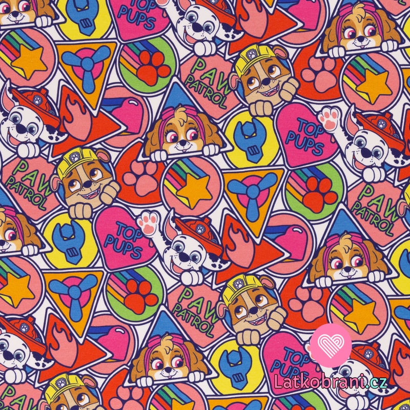 Teplákovina potlač Tlapková patrola medzi geometrickými tvarmi, ľahko počesaná