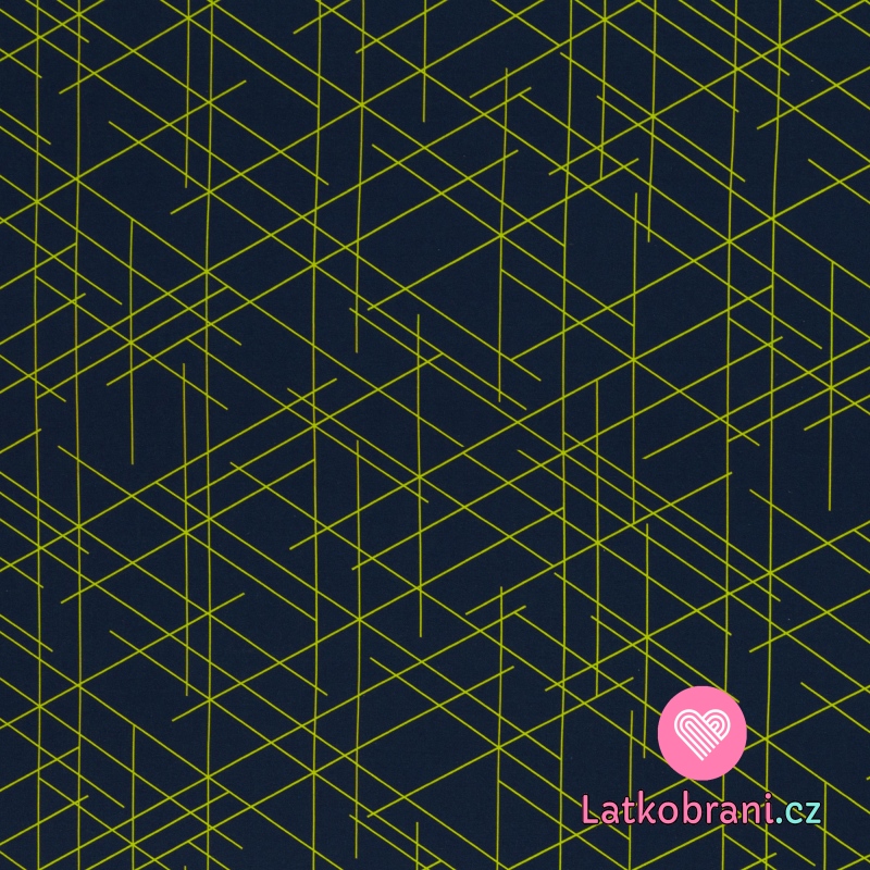 Teplákovina potlač nepravidelné zelené čiary na tmavo modré