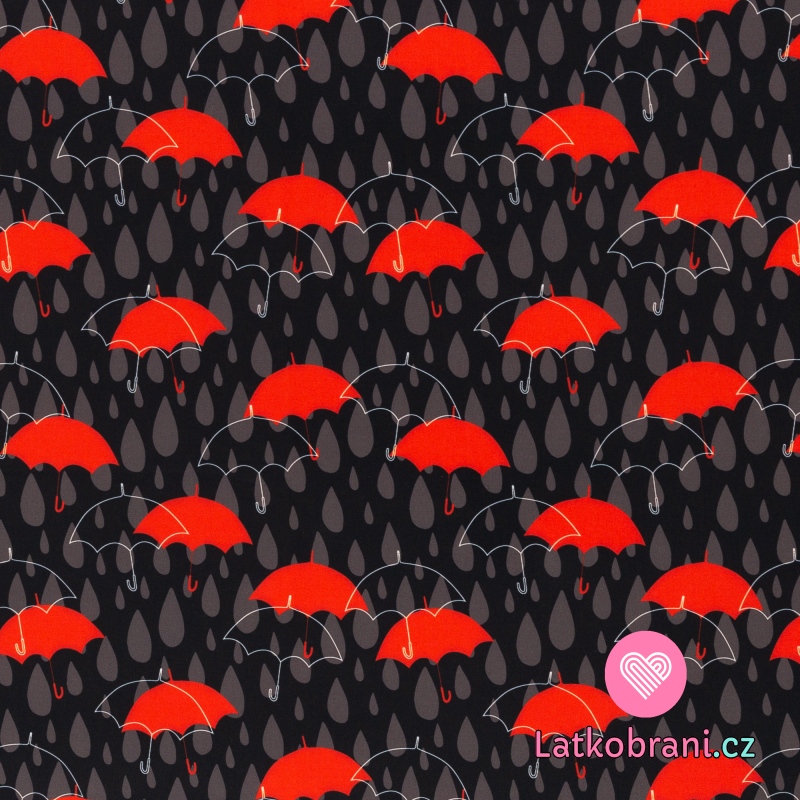 Softshell potlač červené dáždniky medzi kvapkami na čierne s fleecom