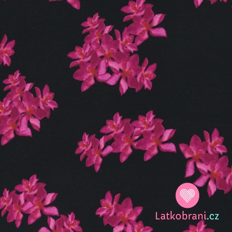 Úplet potlač rozkvitnuté fuchsiovej magnólia na čierne