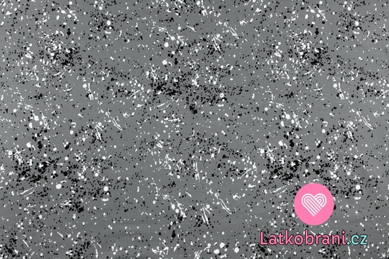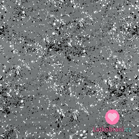 Teplákovina potlač bielej a čiernej machule na šedej